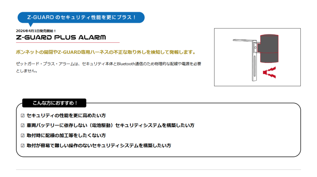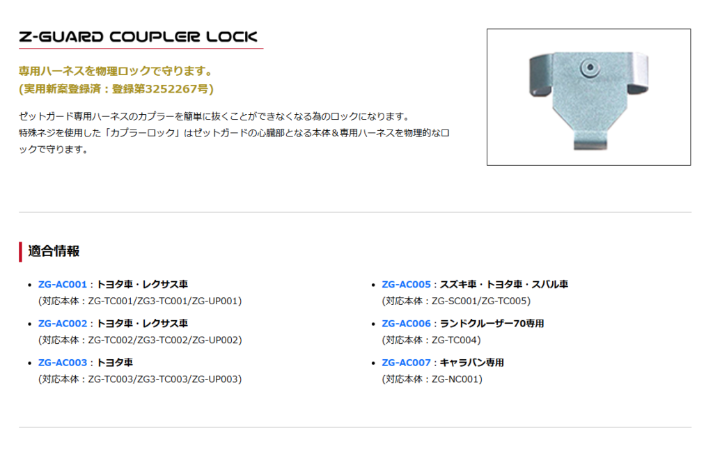 Z-GUARDⅠ・Ⅲ Z-GUARDⅠ エンジン始動ブロック 適合を確認する Z-GUARDⅢ エンジン始動ブロック スマートエントリー機能ブロック 適合を確認する UPGRADEKIT 適合を確認する COUPLERLOCK OPTION REMOCON STAINLESS LOGO SCANNER Z-GUARD PLUS ALARM